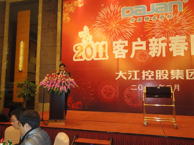 集團(tuán)董事長(zhǎng)陳耀哲致新春賀詞,陳董代表集團(tuán)董事會(huì)和全體員工向歷來(lái)支持和關(guān)心大江的各界朋友、銷售分公司表示衷心的感謝!陳董指出:在過(guò)去的一年,大江控股集團(tuán)碩果累累:非晶變壓器項(xiàng)目順利上馬,被評(píng)為溫州市工業(yè)面上科技項(xiàng)目;集團(tuán)加強(qiáng)科技研發(fā)和設(shè)備投入,技術(shù)中心被認(rèn)定為市級(jí)技術(shù)研發(fā)中心;集團(tuán)生產(chǎn)規(guī)模逐步擴(kuò)大,樂(lè)清經(jīng)濟(jì)開(kāi)發(fā)區(qū)3萬(wàn)平方米新廠房投入使用;在2010年9月,集團(tuán)全盤(pán)收購(gòu)世界500強(qiáng)企業(yè)法國(guó)泰樂(lè)瑪公司;陳董強(qiáng)調(diào):我們要搶抓機(jī)遇、深入市場(chǎng)、迎難而上,為爭(zhēng)一流品牌奠定堅(jiān)實(shí)的基礎(chǔ),發(fā)展是我們永恒的主題,集團(tuán)上下要精誠(chéng)團(tuán)結(jié)、集思廣益、開(kāi)拓進(jìn)取、創(chuàng)新工作,為開(kāi)創(chuàng)大江新局面而努力奮斗!
