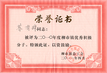 4月30日早上,柳市鎮(zhèn)召開了慶祝“五一”國際勞動(dòng)節(jié)暨關(guān)于表彰2010年度工會(huì)先進(jìn)集體和優(yōu)秀個(gè)人的表彰大會(huì),本次會(huì)議旨在回顧總結(jié)全鎮(zhèn)工會(huì)在2010年的工作,研究部署2011年工作任務(wù)。大江控股集團(tuán)財(cái)務(wù)部經(jīng)理、集團(tuán)愛心基金會(huì)理事長蘇有珠同志憑借其優(yōu)秀的工作表現(xiàn)榮獲“柳市鎮(zhèn)2010年度工會(huì)積極分子”稱號(hào)。