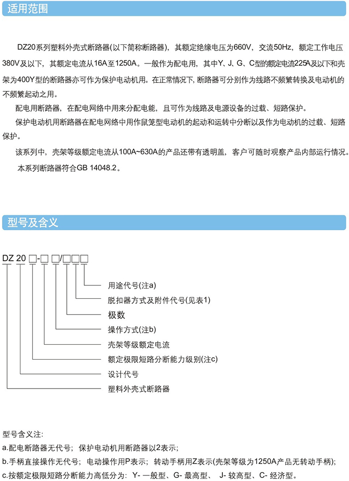 DZ20Y塑料外殼式斷路器
